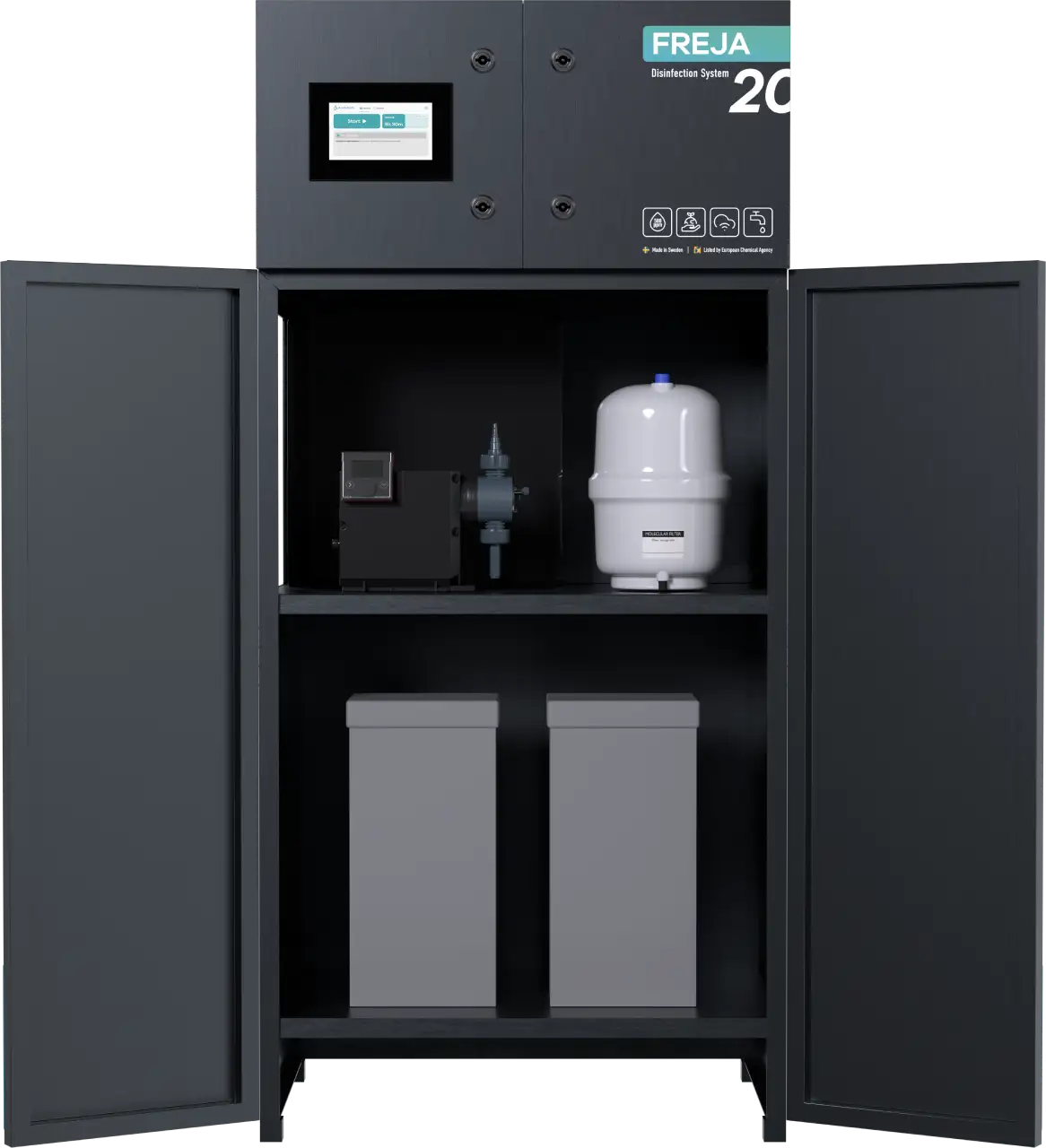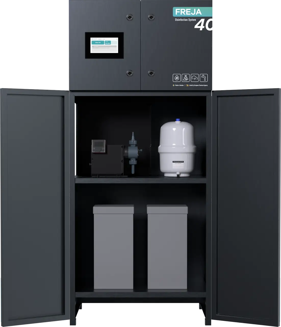 Easily restock your consumables like salt and filters to keep your disinfection system running smoothly. Contact us to order.