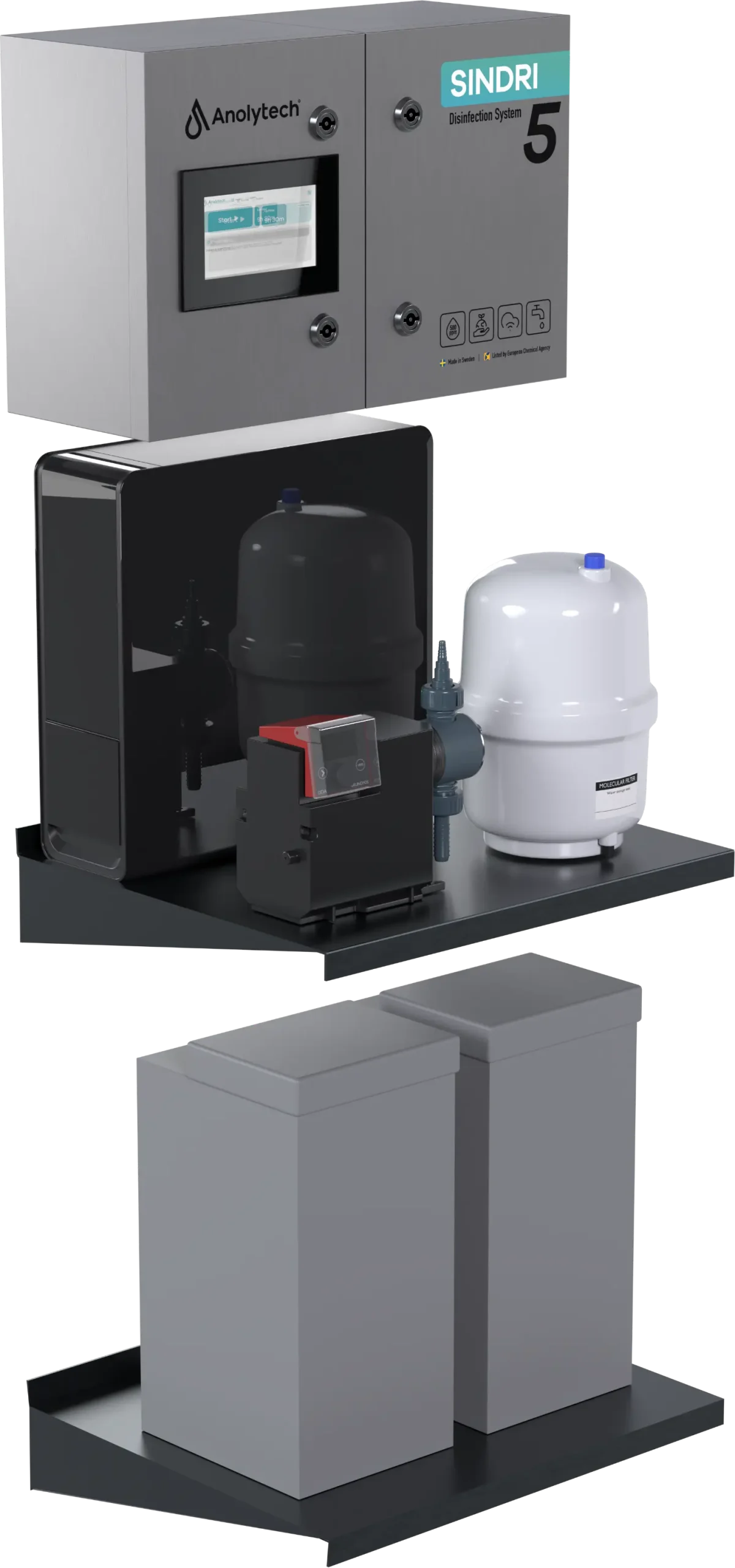 Sindri-serien er designet til at imødekomme industriens behov for sikkert vand og beskyttelse mod bakterier og biofilm i processer og vandkredsløb. Sindri M5 Flexi producerer op til 5 liter AnoDes i timen og er den mindste model i serien. Flexi-varianten er designet til installationer, hvor kabinettet ikke kan være, og leverer den samme sikre og bæredygtige desinfektion i et mere fleksibelt format. Et pålideligt valg for mindre anlæg, der har brug for en fleksibel løsning til bakteriefrit vand og driftssikkerhed.