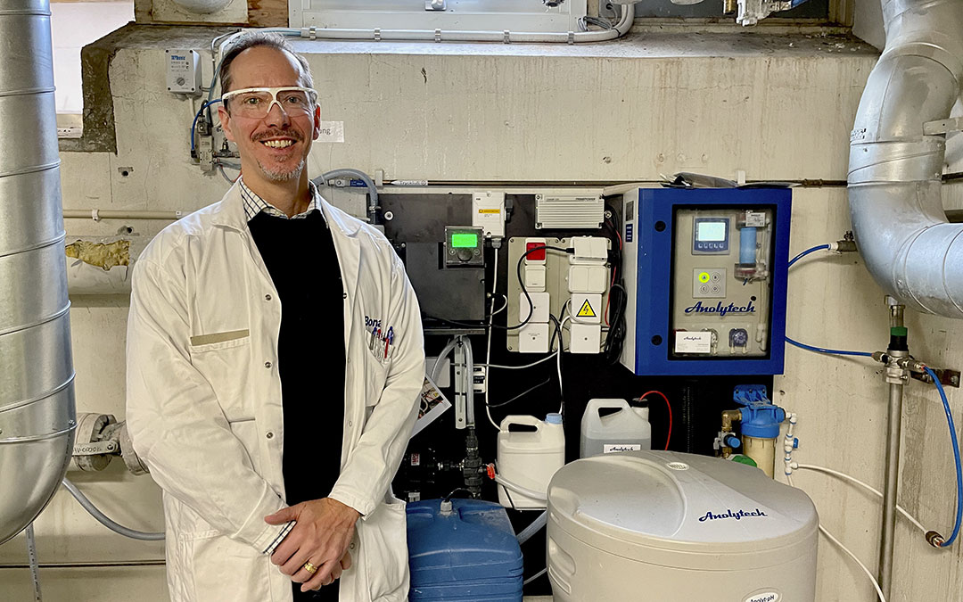 Han menar vidare att i och med att Bona producerar AnoDes på plats från salt och vatten får de en smidig och kostnadseffektiv lösning, vilket han tycker känns bra både för miljön och för personalen på plats.
