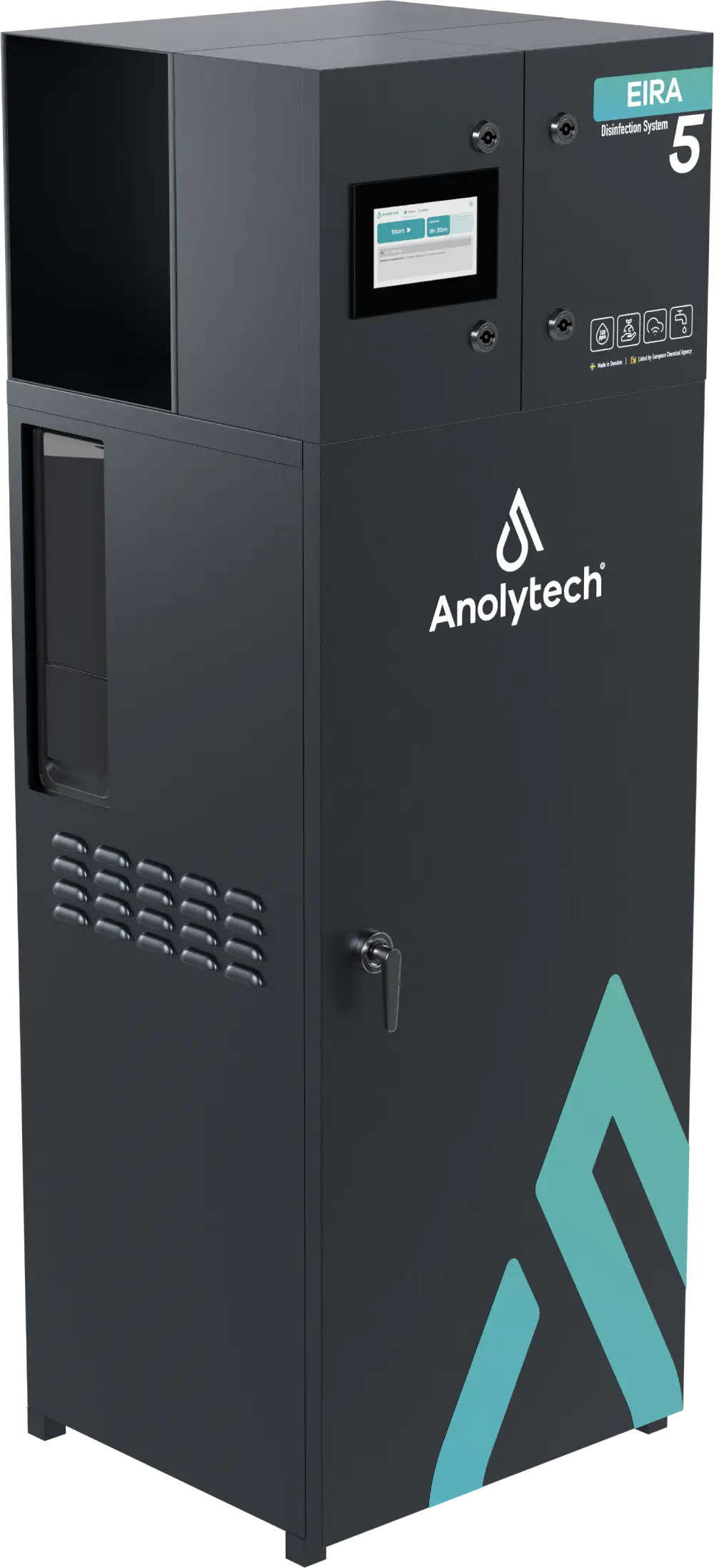 AnoDes is a pH-optimized hypochlorous acid produced using only water, salt, and electricity – making it a sustainable solution with minimal environmental impact.