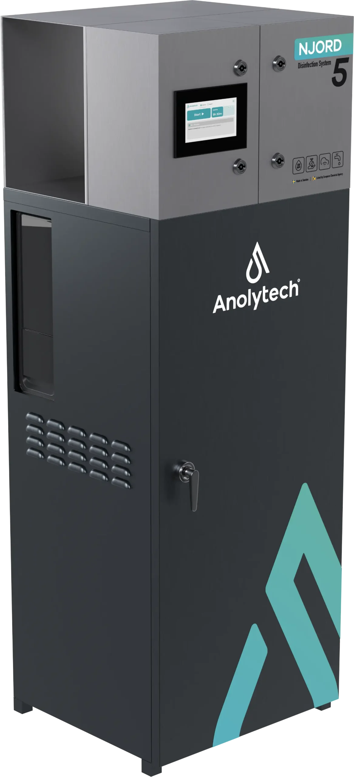 AnoDes is a pH-optimized hypochlorous acid produced using only water, salt, and electricity – making it a sustainable solution with minimal environmental impact.