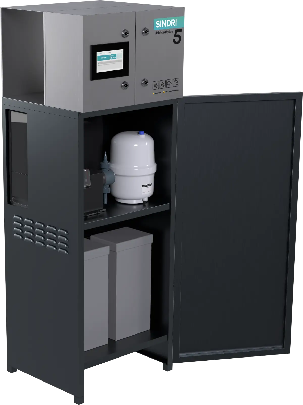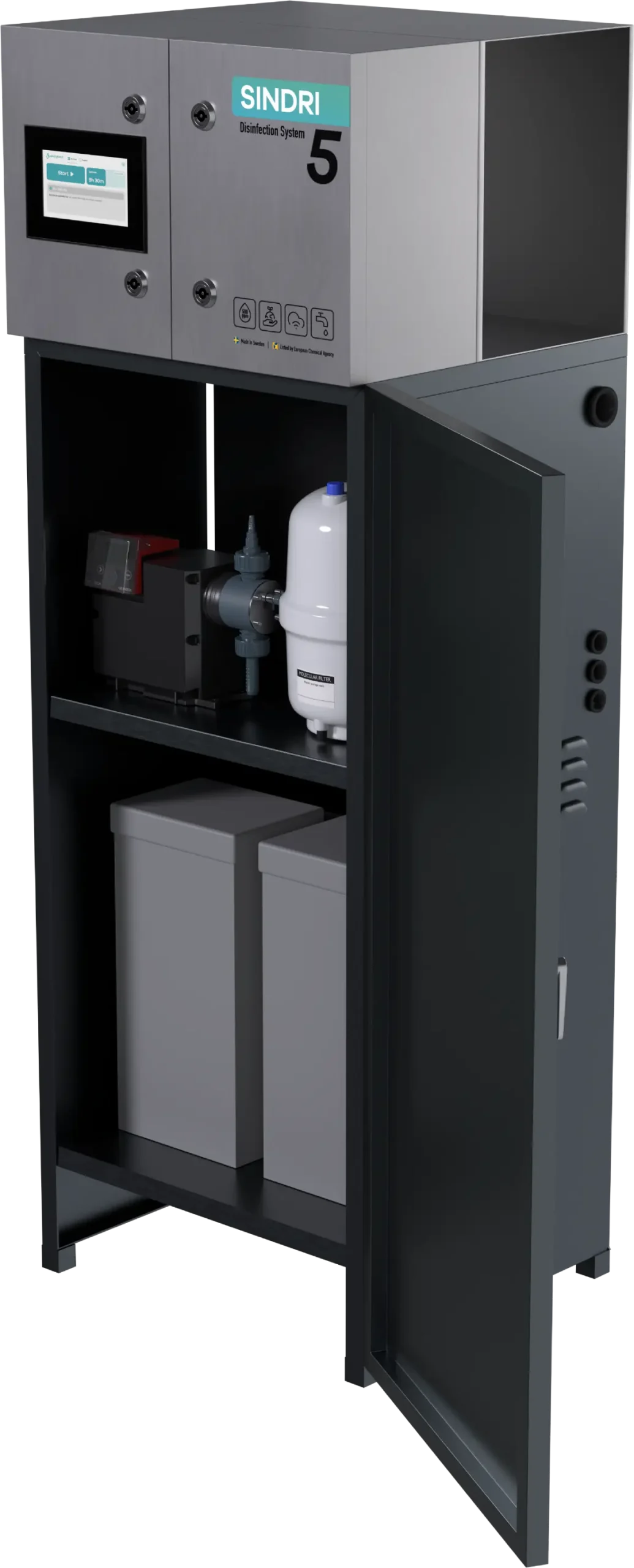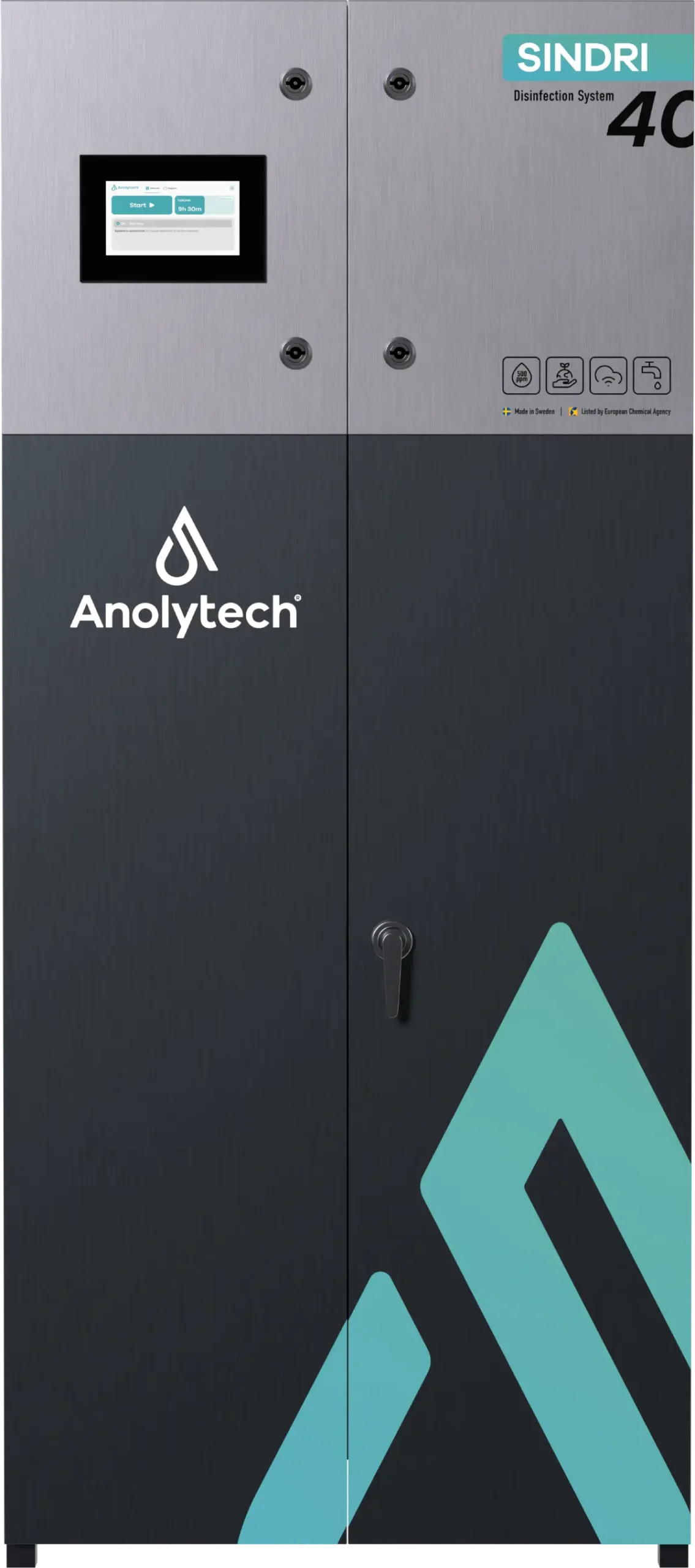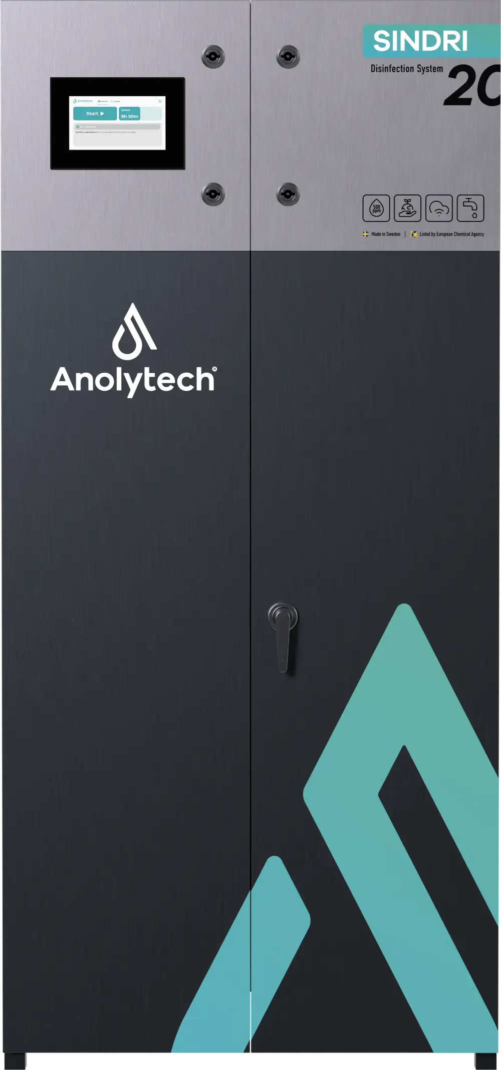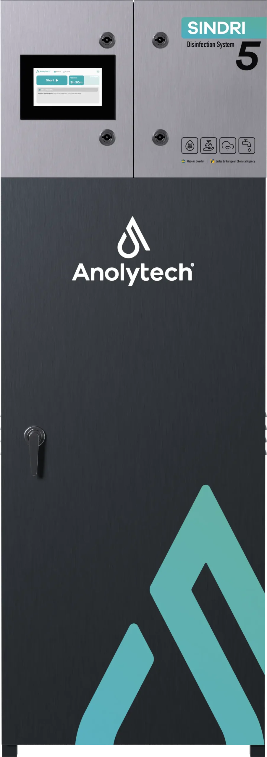The Sindri series is designed to meet industry’s need for safe water and protection against bacteria and biofilm in processes and water circuits. The Sindri M5 produces up to 5 liters of AnoDes per hour and is the smallest model in the range. A reliable choice for smaller facilities with lower water consumption that need a compact, dependable solution for sustainable disinfection.